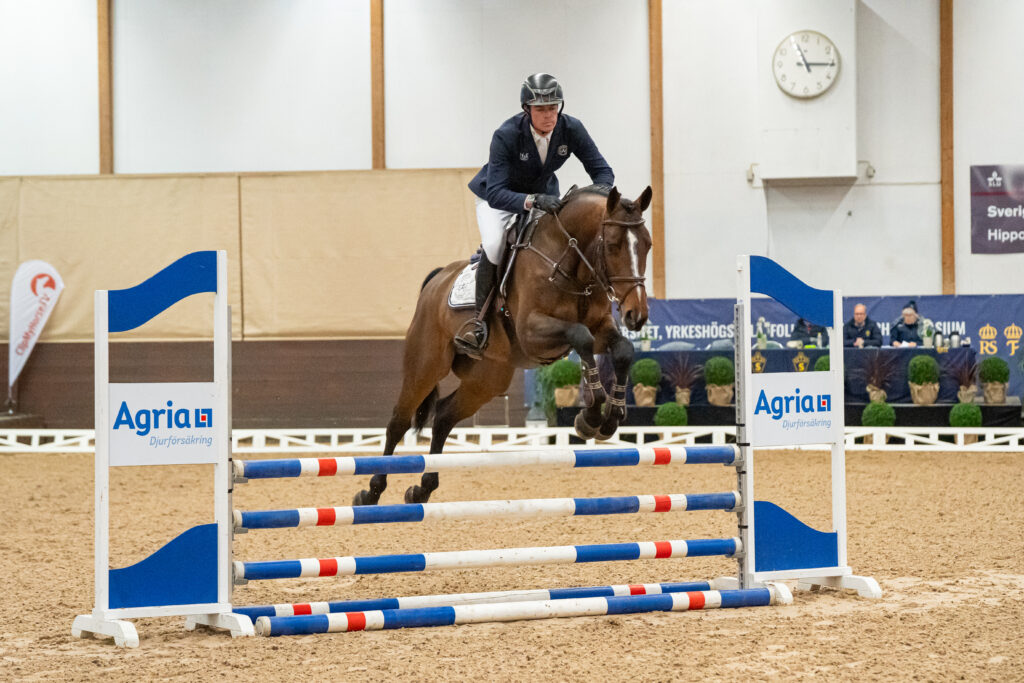 I år koras även bruksprovsvinnare för de 5-åriga hingstarna i både hoppning och dressyr. Här 2025 års vinnare i hoppning, Aganix d´Amour. Foto: Michaela Swärd/SWB