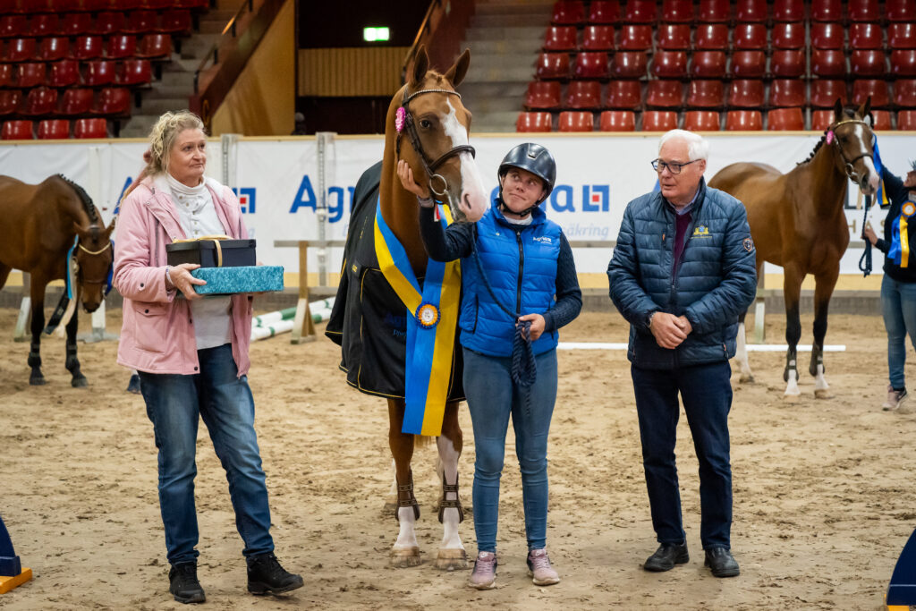 Sunny Day SN (SWB) uppfödare: Birgitta Jonasson / Stora Nääs Stuteri, ägare: Horsepartner Sweden AB tilldelas Hyperion Studs stipendium till årets bästa fälttävlanstalang. Foto: Kim C Lundin